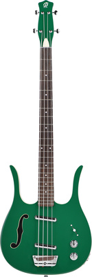 " Danelectro 58 Longhorn Bass Jade, Electric Bass, Top: Masonite with F-hole, Frame and middle block: Poplar, Back: Masonite, Bolt-on neck: Maple, Fingerboard: Pau Ferro, White dot fingerboard inlays, Top binding, Fingerboard radius: 356 mm (14""), Scale length: 756 mm (29.75""), 24 frets, Pickup: Two 59 Dano High Output Lipstick single coils, One master volume control, One master tone control, Black die-cast potentiometer knobs, 3-way pickup switch, Traditional bridge with single pau ferro saddle, Back and sides: Black, Colour: Jade"