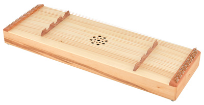 Meerklang Bass Harmony Tambourine 8 Chords, tuned one octave lower than the Harmony Tambourine 8 Chords, 24 strings, 8 chords: C/F/G/D/Dm/Em/Fism/Am, dimensions: 90 x 30 x 8cm, top made of mountain-spruce, birchwood-back, sides / ribs made of alder, logs that hold the pegs and nails made of alder / beechwood, bridges made of pearwood, comes with tuning-key, tuning-chart and 2 mallets.