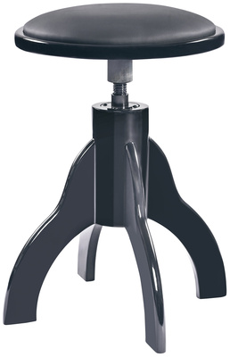 K&M 13851 Piano stool matt finish - base colour: black glossy finish; black imitation leather upholstery; twist spindle mechanism; height: 485 - 625 mm; seat diameter: 350 mm; Base diameter: 425 mm; 4-leg base; weight: 5,2 kg; material: wood