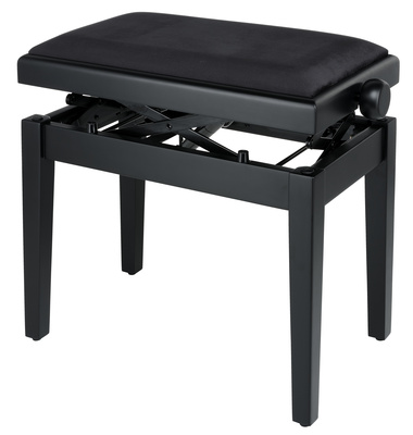 Thomann KB-77BM piano bench; frame color: black matt; double cross precision lifting mechanism; height adjustable from 50 - 61 cm; seat: 520 x 300 mm; seat upholstery: velor black; weight: 13 kg; material: wood; For perfect performance of the precision lifting mechanism, a user weight of 40-130 kg is recommended; Additional seat pads available separately