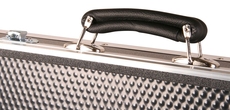 Thon Keyboard Case Tyros 5/76 PVC, Keyboard Case, Made to measure specifically for Yamaha Tyros 5 with 76 keys, From 7 mm honeycomb plastic, 30 x 30 mm Aluminium edge, Upholstered, 2 Suspension medium butterfly latches, 2 Hinges, 1 Artificial leather handle, 2 Handles, Steel ball corners, Dimensions (W x D x H): 1408 x 555 x 205 mm, Weight: 11.6 kg, Made in Germany