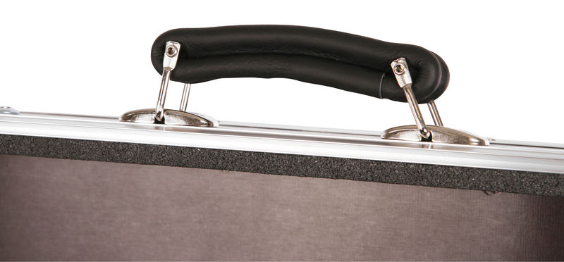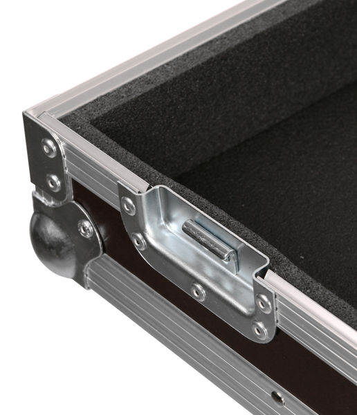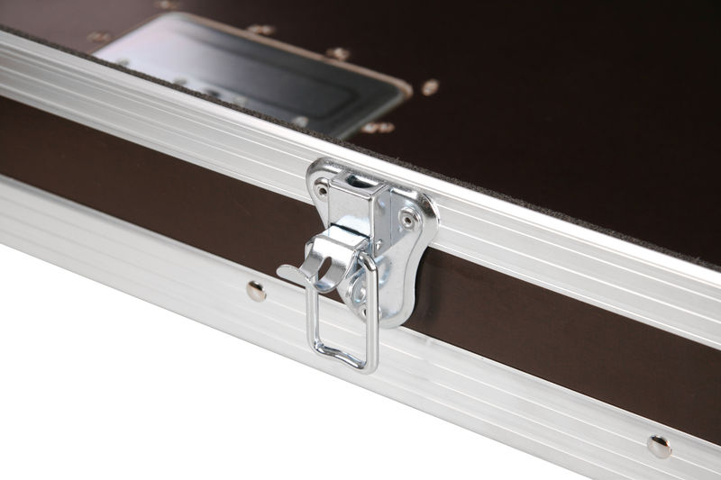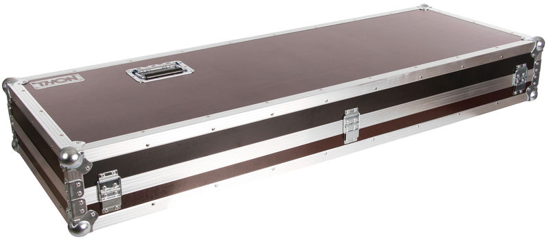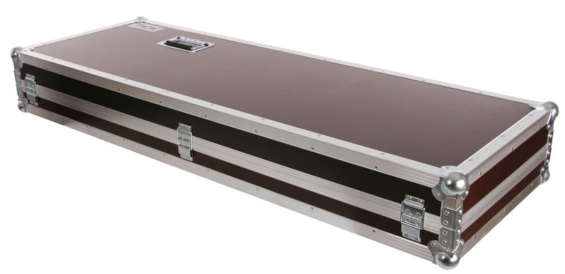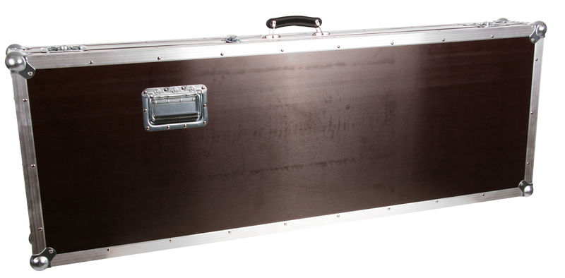 Thon Keyboard Case Tyros 5/76 wood, Keyboard Case, Made to measure specifically for Yamaha Tyros 5 with 76 keys, Made from 7mm multiplex, 30 x 30 mm aluminum edge, Upholstered, 2 Spring-loaded butterfly latches, 2 Hinges, 1 Artificial leather handle, 2 Handles, Steel corners, Dimensions (WxDxH): 1408 x 555 x 205 mm, Weight: 14 kg, Made in Germany, Colour: Phenol brown