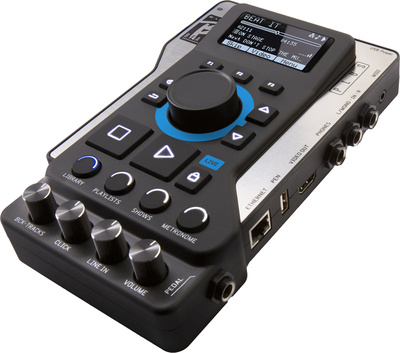 " M-Live B.Beat Plus, Multitrack Audio and Video Player, Audio formats: Wav, MP3, OGG, AAC, Stems, MTA (M-Live Multitrack Audio) with up to 16 mono or 8 stereo tracks, Video and picture formats: MP4, MOV, AVI, JPG, PNG, Transfers lyrics and chords to tablets via Wi-Fi (separately available M-Pen required, not included), Display: 2.4"" OLED, Video management: crossfade/fade in/out/audio track extraction, Manage and create your own multitrack files using the free B.Beat Manager app (Windows/Mac), Set markers with a single click and create loops on stage, 3-Band EQ for each track, Transposition, Direct management of guitar amp modellers, 6x 6.3 mm mono jack output (balanced), 2 line inputs L/R mono or left stereo: 6.3 mm jack, 1 headphone output 6.3 mm stereo jack (incl. metronome), Pedal connection: Start/Stop, Ethernet connection, HDMI output: max. resolution 1920 x 1080, USB-A (2.0) for external storage media, Power supply: USB-C 5.1V DC, 3A or powerbank 10,000 mAh/2.4A, Storage capacity: 256 GB, Thread for bracket: M5, Dimensions (W x D x H) in mm: 125 x 220 x 55, Weight: 0.55 kg, Includes power supply unit, RJ45 network cable and operating instructions"