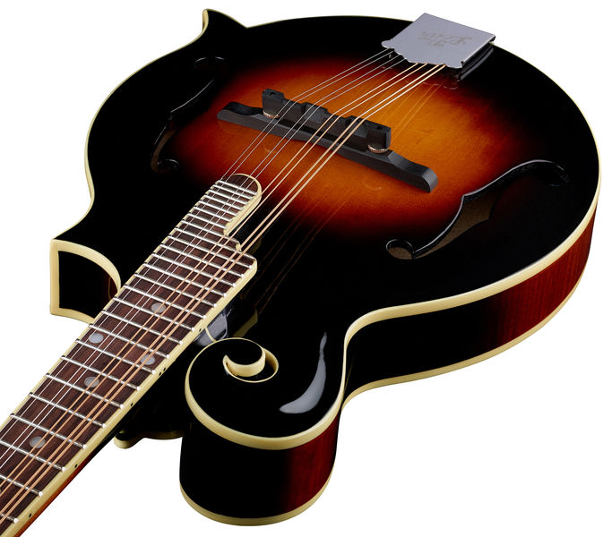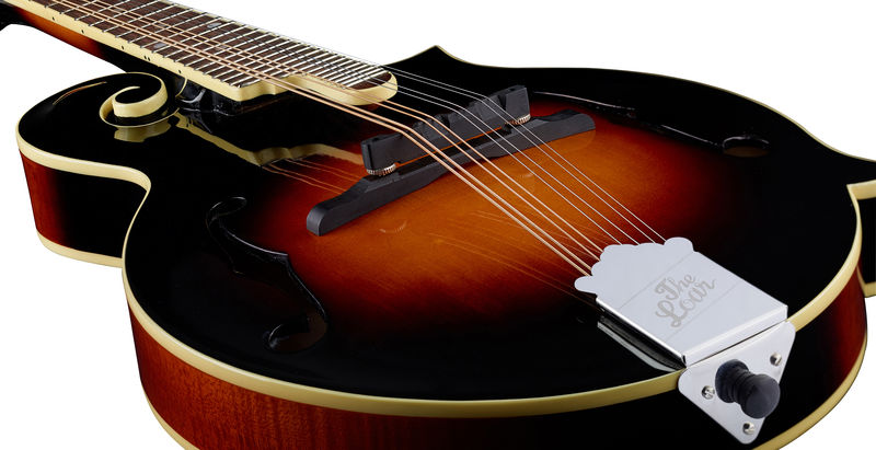 The Loar LM-520-VS, F-Mandolin, Arched solid spruce top, Arched solid maple back, Solid maple sides, Maple neck, Padauk fretboard, V-Profile, Scale: 350 mm, Nut width: 28.5 mm, Bone saddle, Compensated adjustable ebony bridge, Body binding, Colour: Vintage Sunburst High Gloss