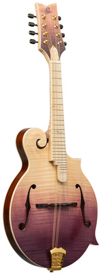 " Ortega RMF200PF Mandoline, Mandolin, Style: F-Style, Top: Solid flamed maple, Back and sides: Solid mahogany, Neck: Flamed maple, Fingerboard: Flamed maple, 2-way truss rod, Pearl-white plastic body binding, Scale: 350 mm (13.78""), Nut width: 28 mm (1.10""), 24 frets, Ebony bridge, Gold machine heads with black tuning buttons, Colour: Transparent Purple Fade high-gloss, Includes Croco leather case"