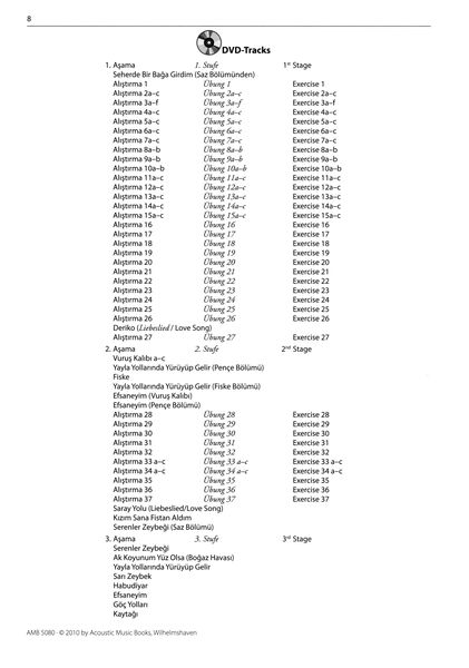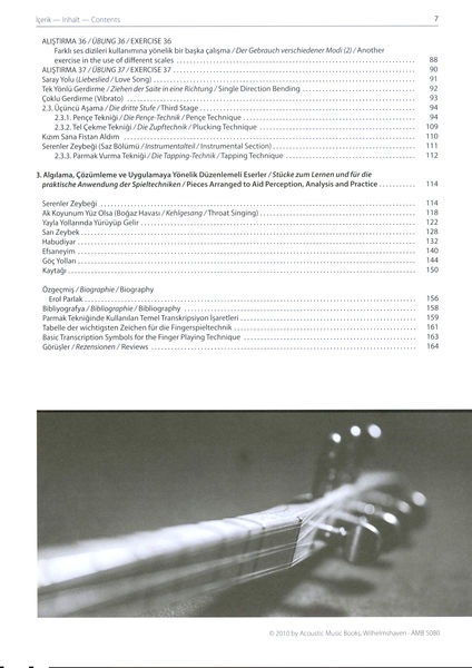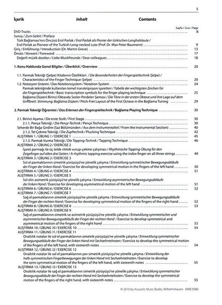 Acoustic Music Books Baglama Saz Method, Method for Baglama (Saz), For the finger playing technique (Selpe) of the Baglama (Saz), By Erol Parlak, Newly developed notation especially for baglama players, ISBN 9783869475806, ISMN 9790700253585, publisher's no. AMB 5080, Format: 21 x 29 cm, 162 Pages, Book is in German, English and Turkish, Includes DVD with demo and play-along versions