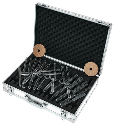 Thomann Sonority Crystal Tuning Fork Set, Planet, 13 tuning forks, Earth 272,2, Pluto 281,28, Merkur 282,54, Mars 289,44, Saturn 295,7, Platonic Year 344,12, Jupiter 367,16, Day 388,36, Uranus 414,72, Moon 420,84, Venus 442,46, Neptun 442,88, Sun 504,88, 2 crystal silicone mallets, 2 holders, incl. padded case
