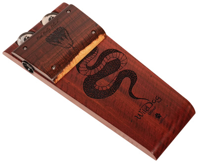 Wild Dog Red Belly Black, Stomp Box, Solid construction, Ergonomic shape, Adjustable chrome-plated Tambourine jingles, Body made of figured red rubberwood, Kickboard made of figured Myall, Non-slip rubber feet, Loud & powerful sound, Passive - no power required, 6.3 mm jack socket, Dimensions: 30 x 14 x 3.9 cm, Weight: 1.1 kg, Handmade in Australia, Includes black neoprene protective cover