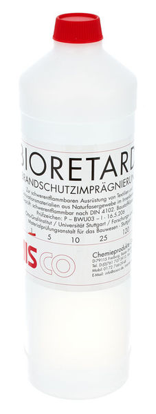 Aisco Flame Resistant Liquid 1l, Flame Resistant Liquid, In 1 litre bottle, Tested: low inflammability in accordance with DIN 4102 building material class B1 for cellulose fibre fabric (except jute), Halogen-free flame retardant with high skin tolerability (Pharmatox report) for absorbent materials made from cellulose fibres (e.g. paper, cardboard, plywood, fabrics, silk) and mixed with wool, wool fabrics, artificial bast, artificial hair and fleece with a cellulose base.