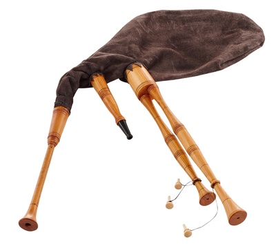 Thomann Huemmelchen Deluxe in C, Bagpipe in C/D, Very suitable for beginners, because it can be played with little pressure and volume, Key: C major / D minor (soprano register), German recorder fingering, 2 Tunable drones (tenor drone tunable from C to D, alto drone tunable from F to G to A), Pipes made of cherry wood, Air bag made of cowhide, The instrument is delivered ready to play, Incl. chanter and drone reeds, Made in Germany