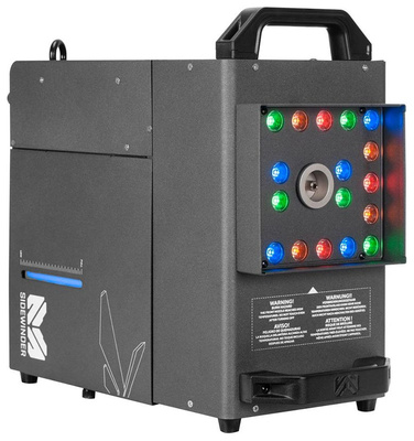 Magmatic Sidewinder; CO2 simulator based on an evaporator and with RGBA LEDs; Through the use of extremely powerful pumps, the fog effect emerges explosively, just like CO2-based effects; The specially developed Atmosity Flash Fog Fluid (AFF) ensures that the fluid dissolves particularly quickly; However, the standard AEF fluid can also be used for normal fog effects; Equipped with 22 x 2-watt RGBA LEDs around the fog nozzle, so that the effect can also be varied in color; Can be used both vertically and horizontally; Can also be mounted upside down to create upside-down effects; Multicolor touchscreen; Optional control via wired remote control, radio remote control, and wireless E-Fly (not included); Fluid level indicator; Technical data:; Heating block power: 1450 W; Heat-up time: approx. 9 min; Fog time: max. 8 sec. at 100%; Continuous mist: no; Quantity control: stepless; Fluid container capacity: 2.5 l; Fluid consumption: approx. 180 ml/min. (at max. output); Protective circuits: Thermal monitoring of the heating element / energy-saving mode including self-cleaning; HPA (High Pressure Air Pump) prevents blockages; Control protocols: DMX 512-A (RDM), optional E-Fly, FB; DMX 512 channels: 1/3/7 (3 modes); Internal control: manual control; Menu display: LCD touchscreen; DMX 512 connection: XLR 5-pin; Mains voltage: 230 - 240 V, 50/60 Hz; Current consumption: 6.8 A @ 230 V; Power connection: Power Twist TR1 input; Housing: aluminum; Color: anthracite; Protection class: IP20; Dimensions: 41.3 x 19.3 x 37.6 cm; Weight: 13.7 kg