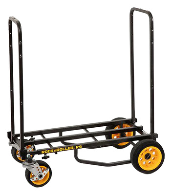 " RockNRoller R9 ""Mighty"" Multicart; Collapsible transport cart; outfitted with rugged, foam-filled no-flat R-Trac 8"" x 3"" rear wheels and 6"" x 2"" front swivel casters that ride smoothly with excellent traction, similar to pneumatic tires, but without the hassle of upkeep or repair; Powder-Coated steel tube frame; Expandable Total Length: 86 - 132 cm (34"" - 52""); Frame Bed Width: 34 cm (13,5""); Load Capacity: 226 kg (500 lbs); Weight: 13,3 kg (29,4 lbs)"