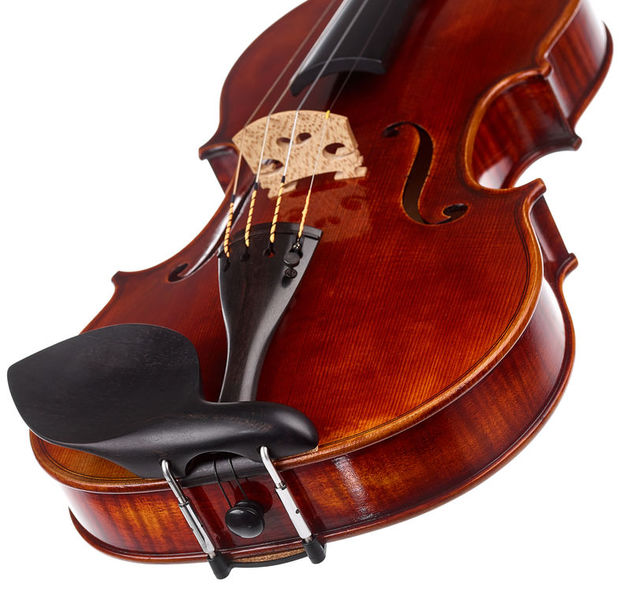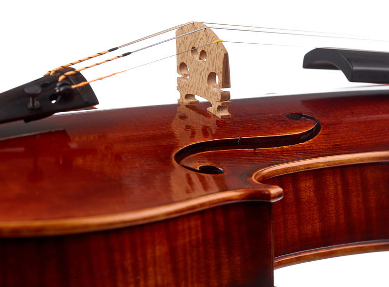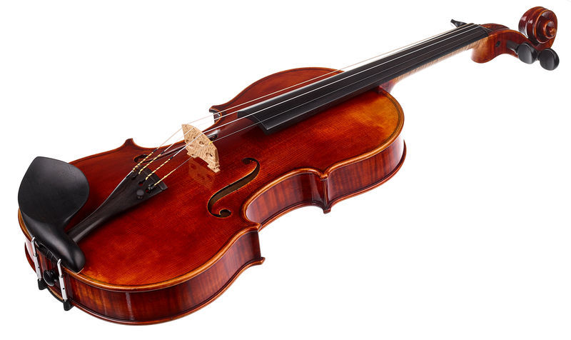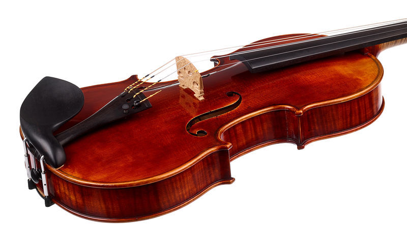 Franz Sandner Meisterwerk Guarneri Vn 4/4, Master Violin, Size: 4/4, Model according to Stradivari, Selected well-seasoned solid spruce top, Selected, well-seasoned, beautifully flamed solid maple back, Selected ebony fittings, High-quality antique finish, Pirastro Evah Pirazzi Gold strings, With Franz Sandner brand stamp inside the violin, Made in Germany